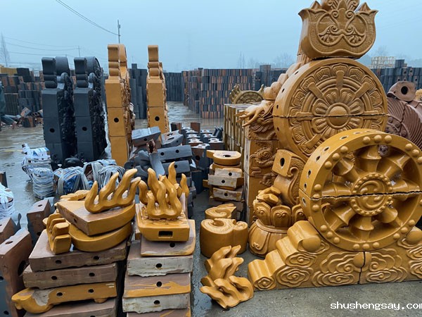 寺庙琉璃瓦原料是江苏宜兴当地的粘土,吸水率8%左右抗压强度500N抗冻性-30 °c使用年限50年